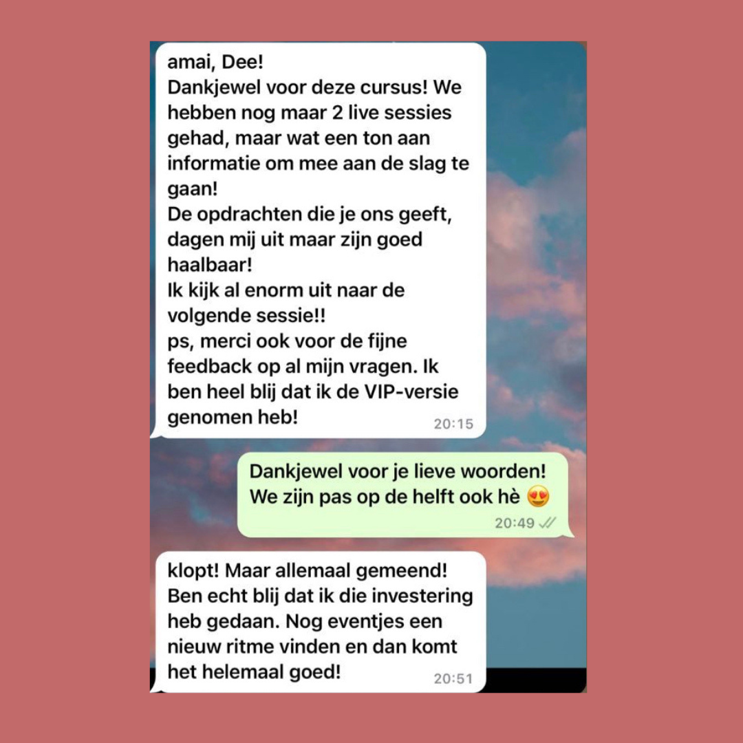 De masterclass bestaat uit 3 modules, een werkboek met opdrachten én optioneel een live Q&A sessie met mij.