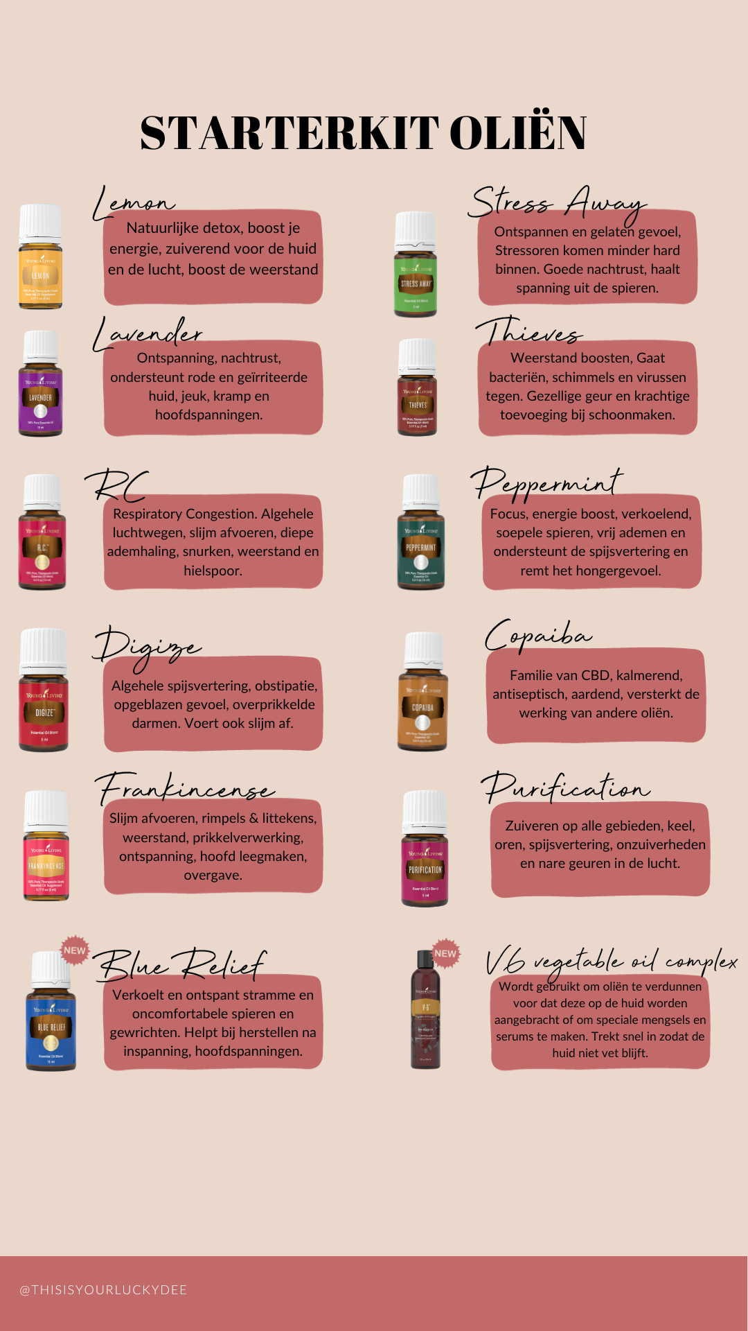 De starterkit is zo samengesteld, dat je meteen mag ervaren wat de oliën voor je doen op fysiek, mentaal en spiritueel gebied.